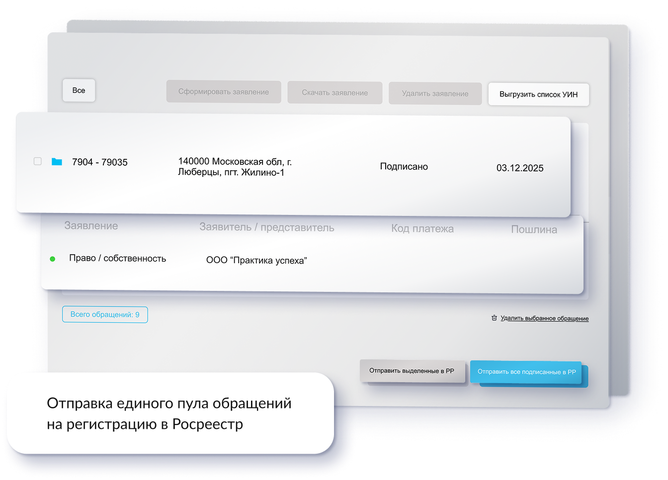 Формируйте обращения с индивидуальными данными по объектам и дольщикам — одним действием. Без повторного ввода и ручной обработки